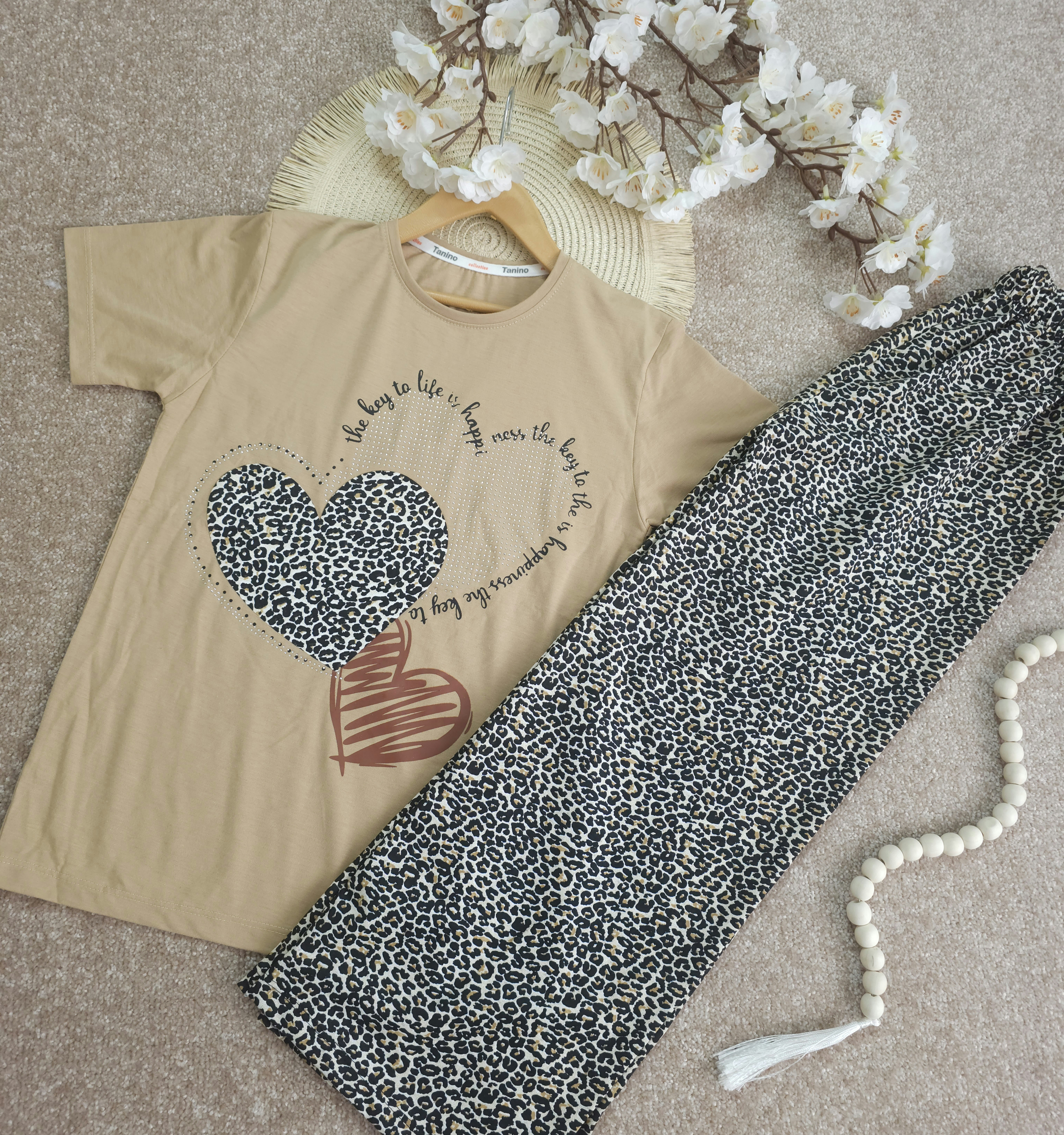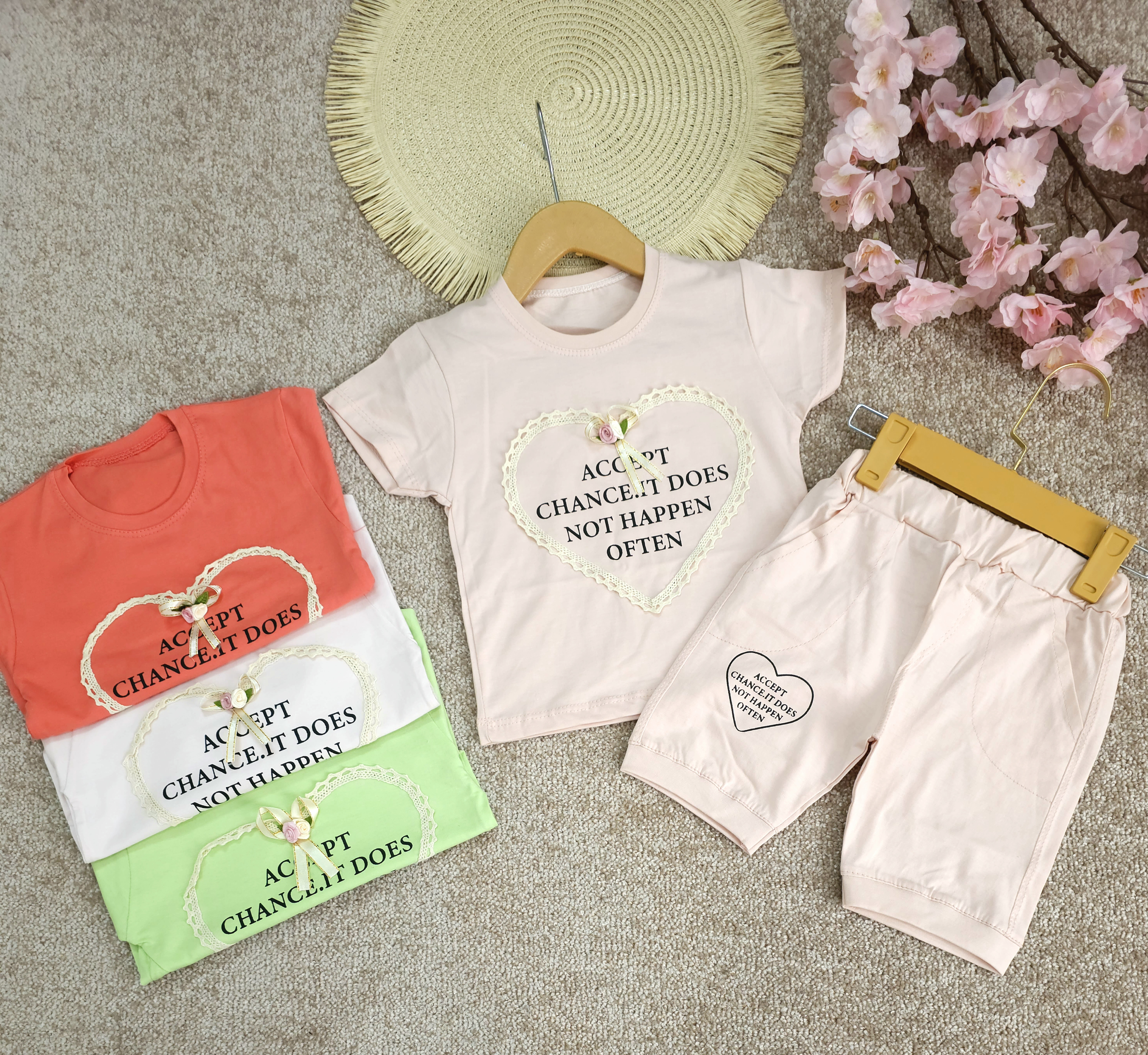 ست تیشرت وشلوارک دخترانه طرح قلب