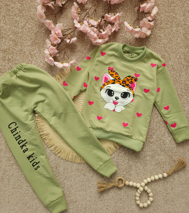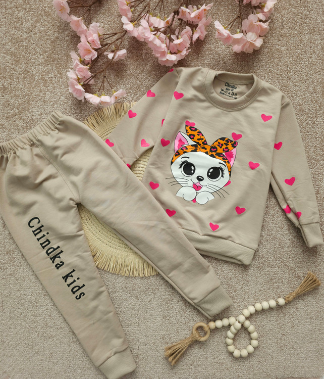 بلوز وشلوار دخترانه پیشی قلبی